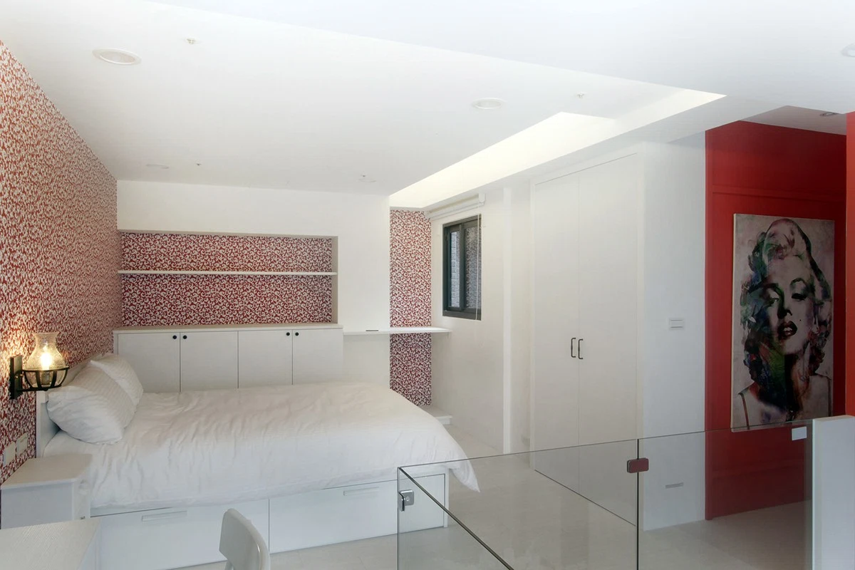 小編的最愛臥房設計以「紅白搭配」作為重點視覺,提升私領域的活力氛圍。